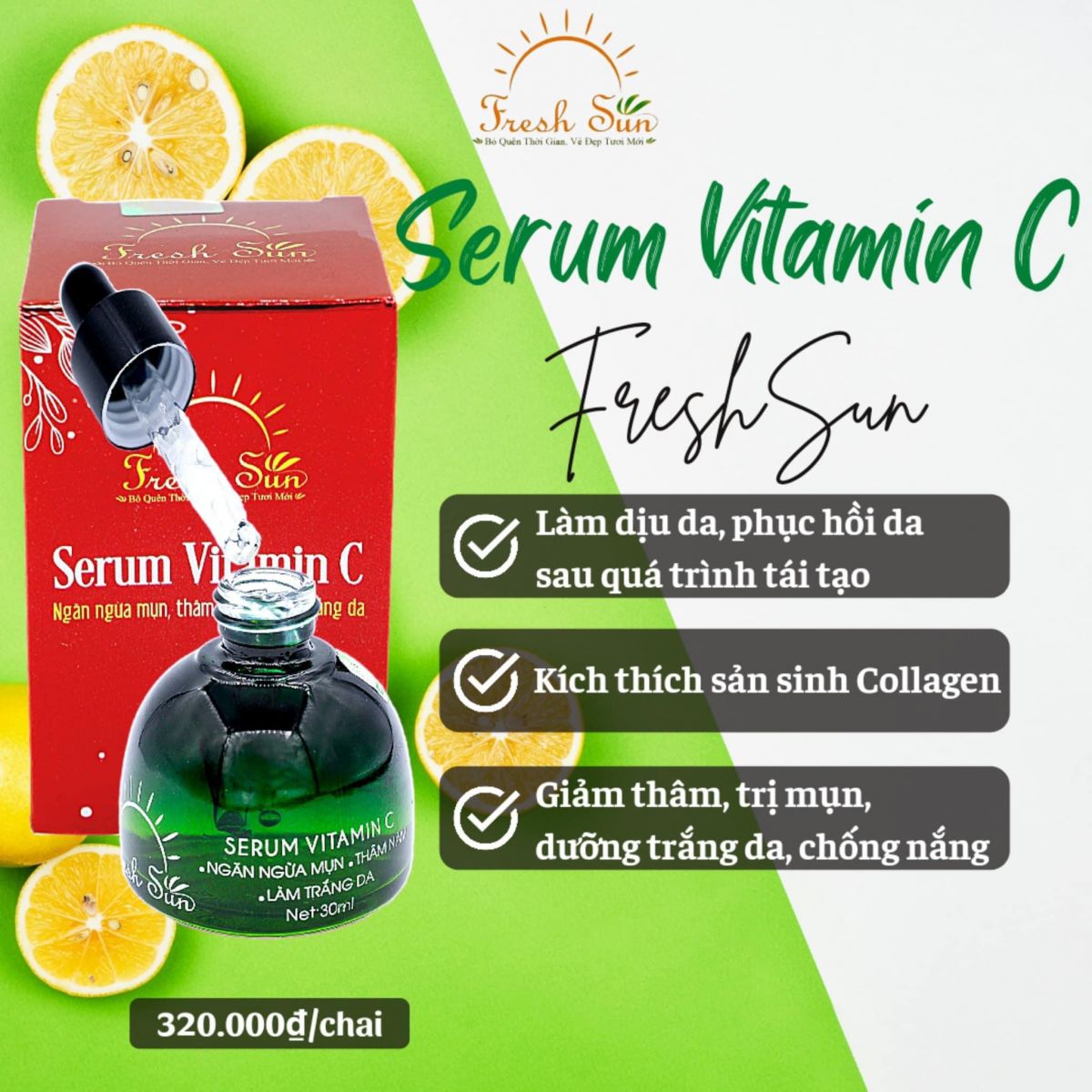 Serum Vitamin C - CÔNG TY TNHH SX TMDV TƯƠI BEAUTY chuyên sản xuất và thương mại dòng sản phẩm mỹ phẩm cao cấp Fresh sun, Sâm Linh Thảo, sản phẩm có cam kết mang đến cho người tiêu dùng chất lượng vượt trội giá phù hợp